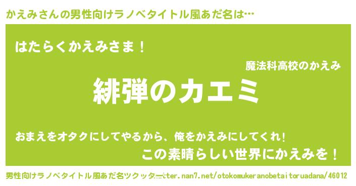 | 欧米人風あだ名 | 『かえみ・ステッグマイヤー』 |