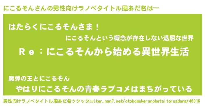 | 意味不明あだ名 | 『自称にこるそん』『永久保存にこるそん』 |