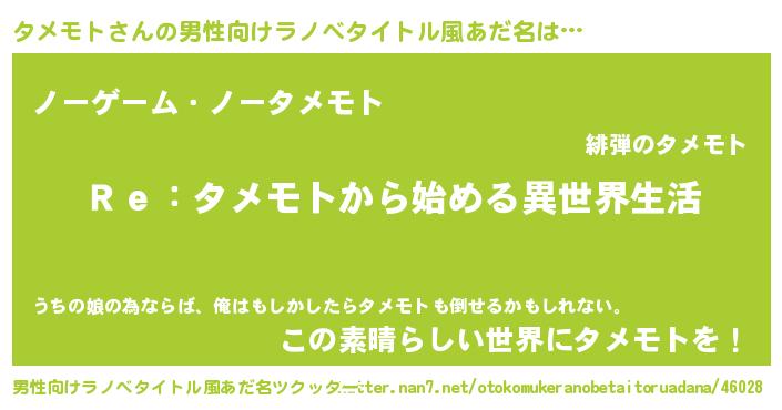 | 意味不明あだ名 | 『自称タメモト』『タメモトフォーエバー』 |