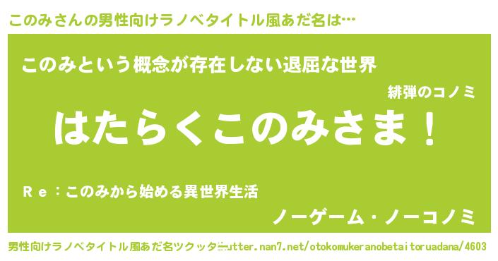 このみさんの男性向けラノベタイトル風あだ名をツクッター!