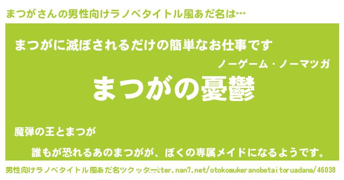 | 女子向けラノベタイトル風あだ名 | 『(仮)まつがのやんごとなき事情』 |