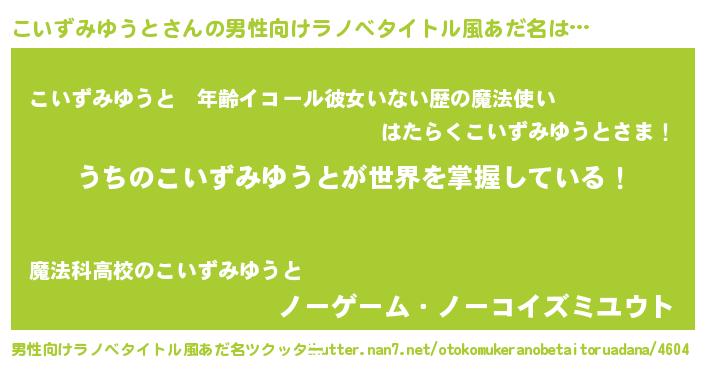 | ヘコむあだ名 | 『こいずみゆうと(笑)』『こいぷりん』 |