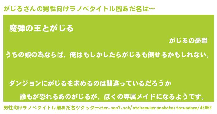 | 女子向けラノベタイトル風あだ名 | 『がじる伯爵の花嫁』 |