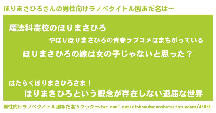 | 女子向けラノベタイトル風あだ名 | 『ほりまさひろ様がみてる』 |