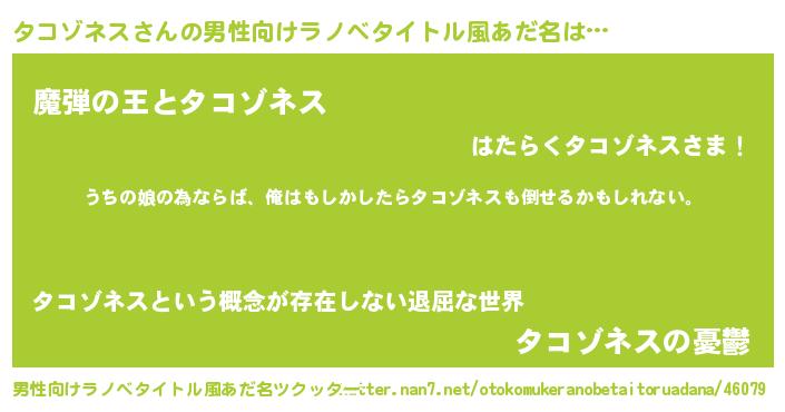 | 女子向けラノベタイトル風あだ名 | 『タコゾネスの婚約者』 |