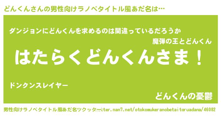 | 胡散臭い通販商品みたいなあだ名 | 『信頼と実績のサプリメント…その名も「どんくん」』 |
