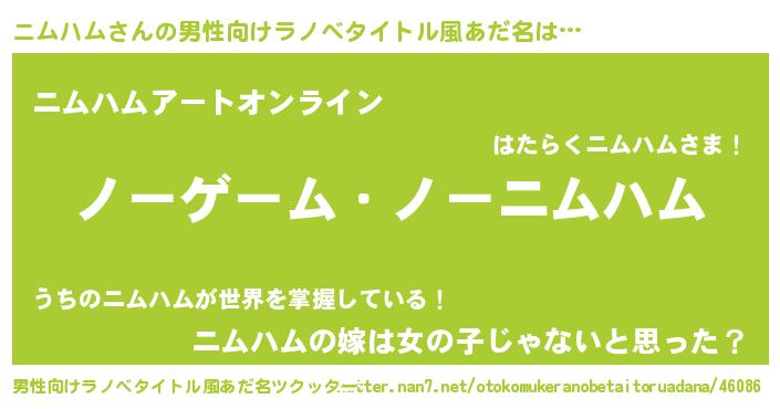 ニムハムさんの男性向けラノベタイトル風あだ名をツクッター!