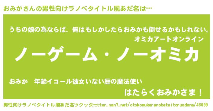 | 女子向けラノベタイトル風あだ名 | 『死神おみかの再婚』『おみかの婚約者』 |