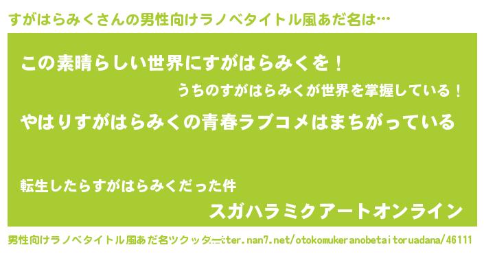 | 女子向けラノベタイトル風あだ名 | 『すがはらみくの雑貨屋さん』 |