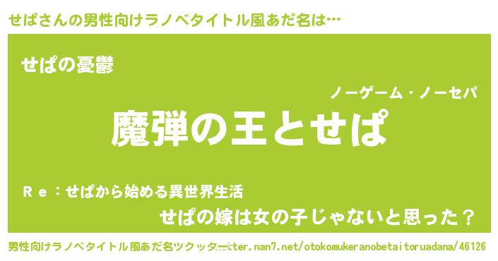 | 女子向けラノベタイトル風あだ名 | 『せぱが死なない童話 林檎のせぱの診療簿』 |