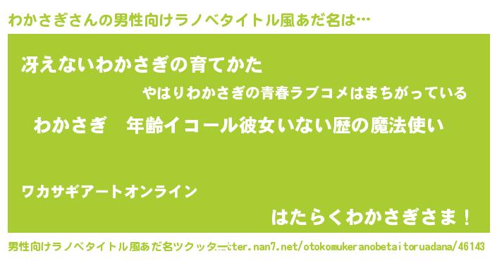 | ヘコむあだ名 | 『酢こんぶ』『わかもー』 |