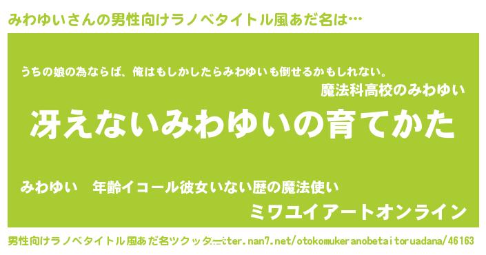 | 胡散臭い通販商品みたいなあだ名 | 『世界が平和になる高級そうな絵画…その名も「みわゆい」』 |