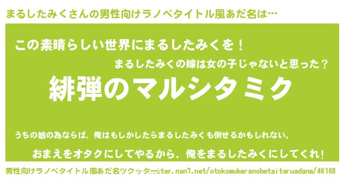 | 女子向けラノベタイトル風あだ名 | 『シンデレラまるしたみく家の靴箱館』 |