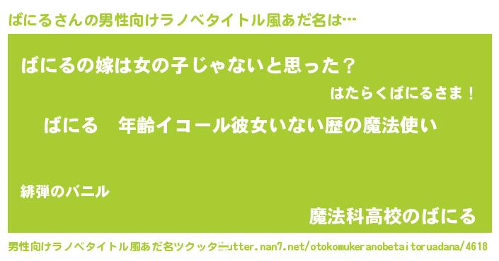 | 胡散臭い通販商品みたいなあだ名 | 『全米が絶賛したサプリメント…その名も「ばにる」』 |