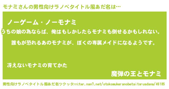 | ヒーロー風カッコイイあだ名 | 『ネオモナミ』『慈愛の使者モナミ』 |