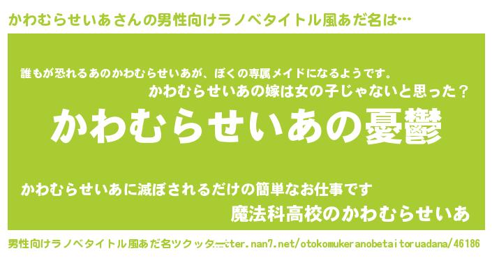 | 女子向けラノベタイトル風あだ名 | 『(仮)かわむらせいあのやんごとなき事情』 |