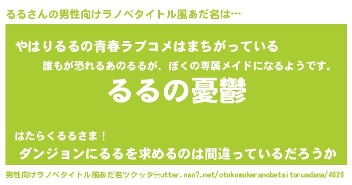 | 女子向けラノベタイトル風あだ名 | 『(仮)るるのやんごとなき事情』 |