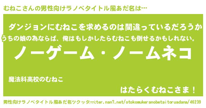 | 女子向けラノベタイトル風あだ名 | 『むねこ恋絵巻』『首の姫と首なしむねこ』 |
