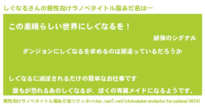 | 女子向けラノベタイトル風あだ名 | 『しぐなるは平凡を望む』 |