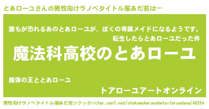 | 女子向けラノベタイトル風あだ名 | 『とあローユアンティーク』 |