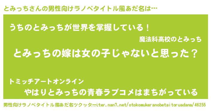 | 女子向けラノベタイトル風あだ名 | 『とみっち様がみてる』 |
