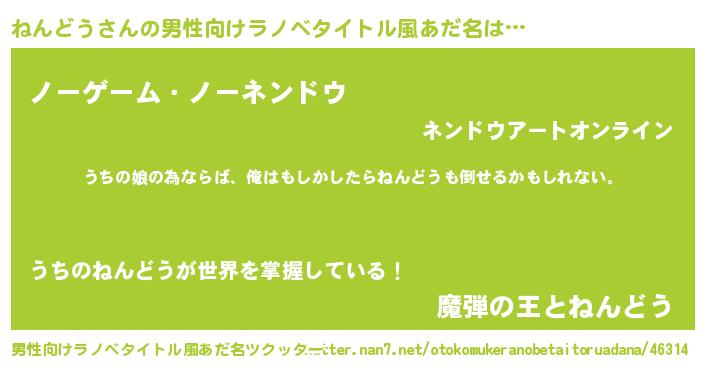 | 意味不明あだ名 | 『ねんどうフォーエバー』 |
