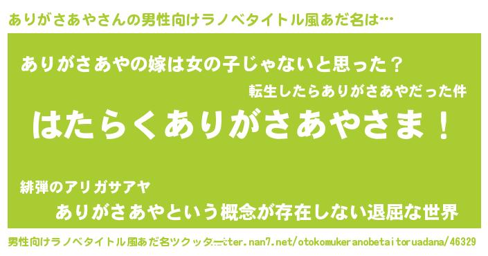 | ヘコむあだ名 | 『ありぷりん』『ありがさあや(笑)』 |