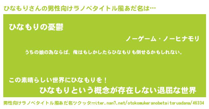 | 女子向けラノベタイトル風あだ名 | 『ひなもり伯爵の花嫁』 |
