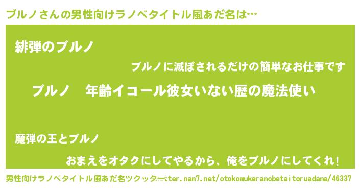 | ヘコむあだ名 | 『ブルっぺ』『ブルノ(爆)』『豆乳』 |