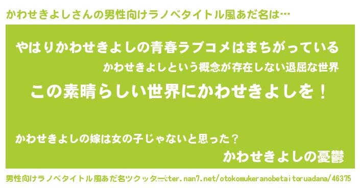 | 女子向けラノベタイトル風あだ名 | 『悪役かわせきよしに転生したようですが、知った事ではありません』 |