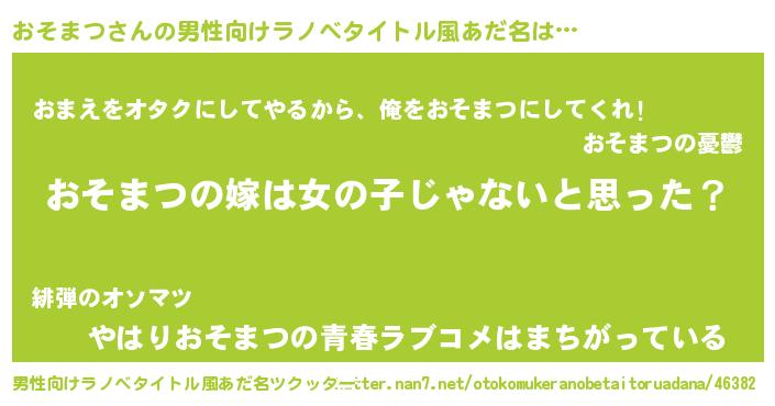 | 女子向けラノベタイトル風あだ名 | 『おそまつ様がみてる』 |