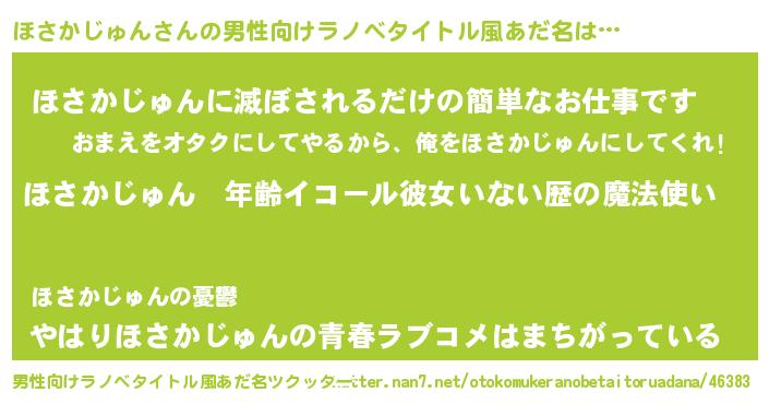 | 女子向けラノベタイトル風あだ名 | 『ほさかじゅんの玉の輿計画!』 |