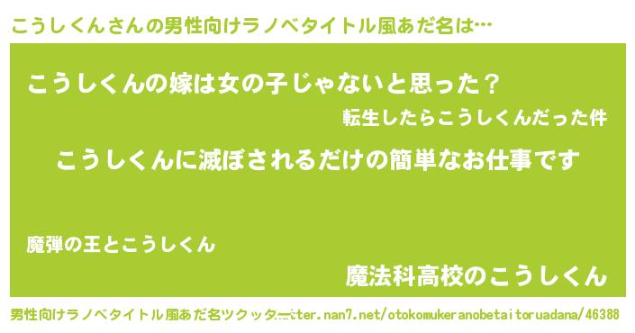 | ヘコむあだ名 | 『こうっちょ』『こうしくん(笑)』 |