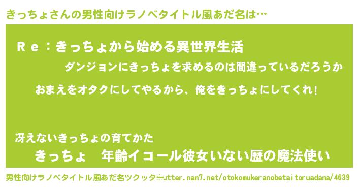 | ヒーロー風カッコイイあだ名 | 『正義の使者きっちょ』『暗黒騎士キッ』 |