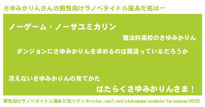 | 女子向けラノベタイトル風あだ名 | 『さゆみかりんの卵を拾いまして』 |