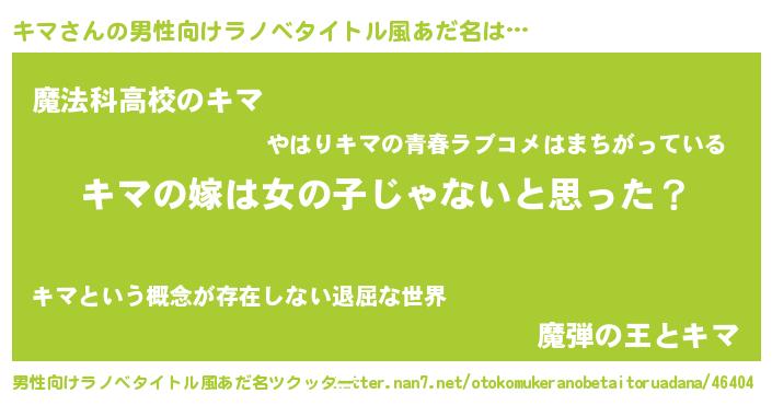 | 女子向けラノベタイトル風あだ名 | 『キマ様がみてる』『キマアンティーク』 |