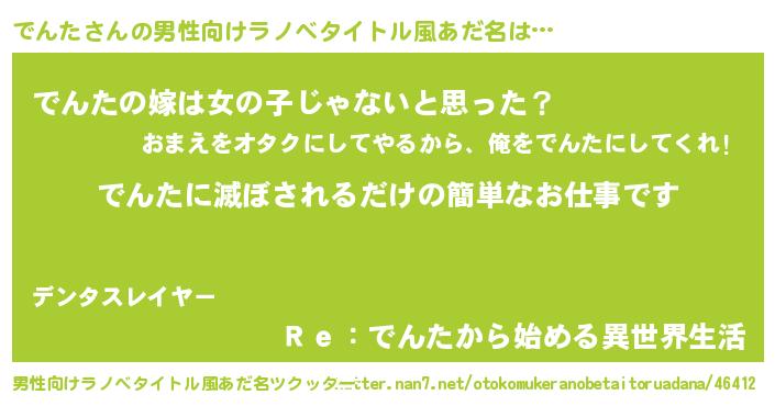 | 意味不明あだ名 | 『とにかく怪しいでんた』『自称でんた』 |