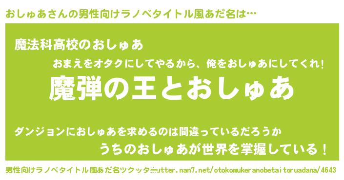 | 女子向けラノベタイトル風あだ名 | 『乙女ゲームの破滅フラグしかない悪役おしゅあに転生してしまった…』 |