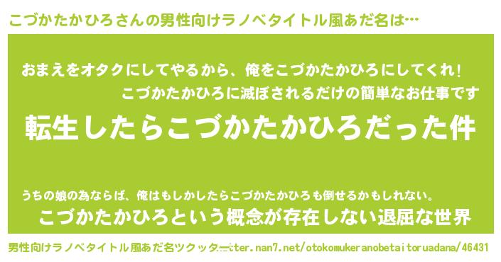 | 肩書あだ名 | 『こづかたかひろ上級大将』 |