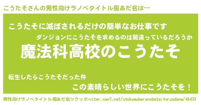 | 意味不明あだ名 | 『自称こうたそ』『たけのこ科こうたそ属』 |
