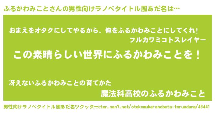 | 女子向けラノベタイトル風あだ名 | 『悪役ふるかわみことに転生したようですが、知った事ではありません』 |