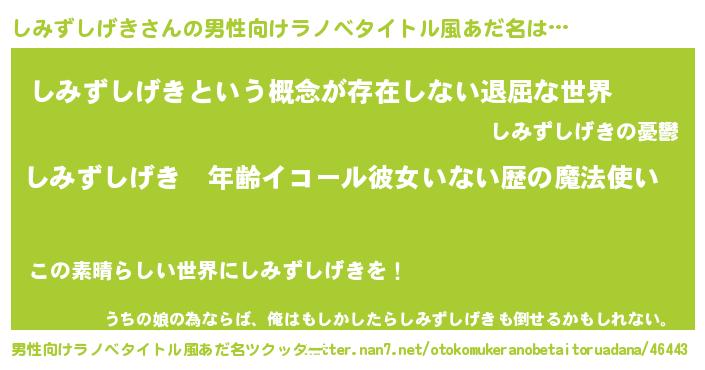 | 胡散臭い通販商品みたいなあだ名 | 『前代未聞の健康食品…その名も「しみずしげき」』 |