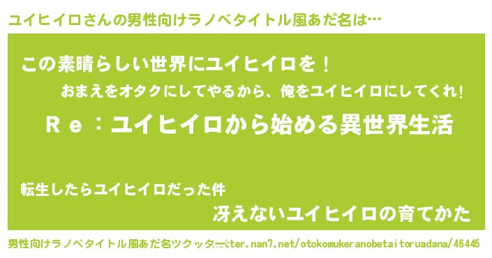 | 女子向けラノベタイトル風あだ名 | 『ユイヒイロストレイドッグス』 |