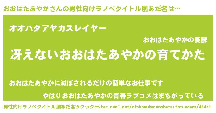 | 女子向けラノベタイトル風あだ名 | 『シンデレラおおはたあやか家の靴箱館』 |