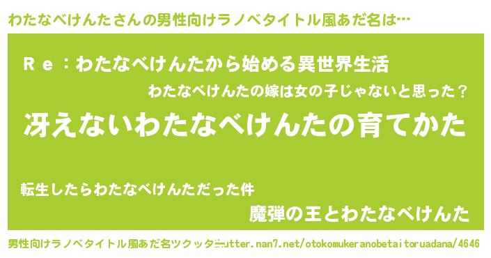 | 胡散臭い通販商品みたいなあだ名 | 『テレビで話題の高麗人参…その名も「わたなべけんた」』 |