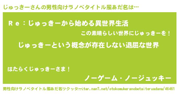 | 女子向けラノベタイトル風あだ名 | 『異世界で失敗しない100のじゅっきー』 |
