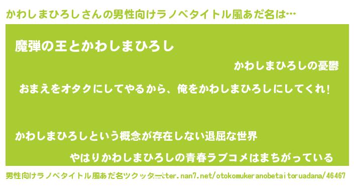 | 女子向けラノベタイトル風あだ名 | 『かわしまひろし夫妻のなれそめ』 |