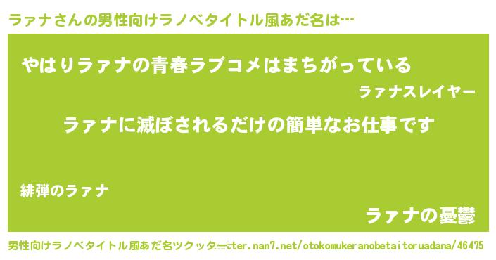 ヒーロー風カッコイイあだ名 | 『ウルトララァナマン』『スーパーラァナ』 |