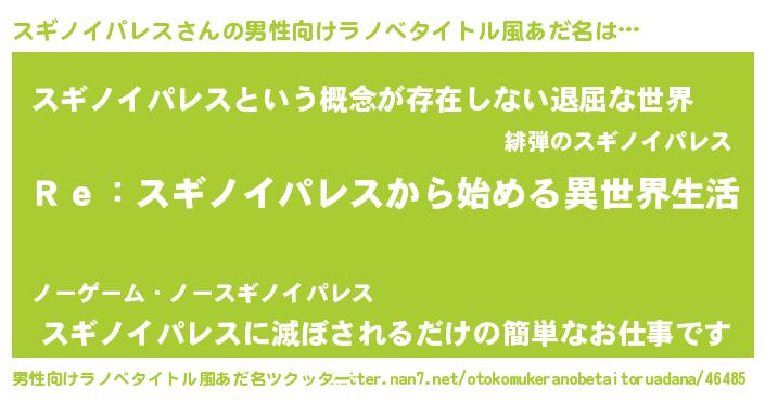 | 女子向けラノベタイトル風あだ名 | 『スギノイパレスストレイドッグス』 |