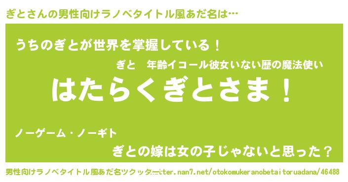 | ヒーロー風カッコイイあだ名 | 『魔戒騎士ギト』『正義の使者ぎと』 |
